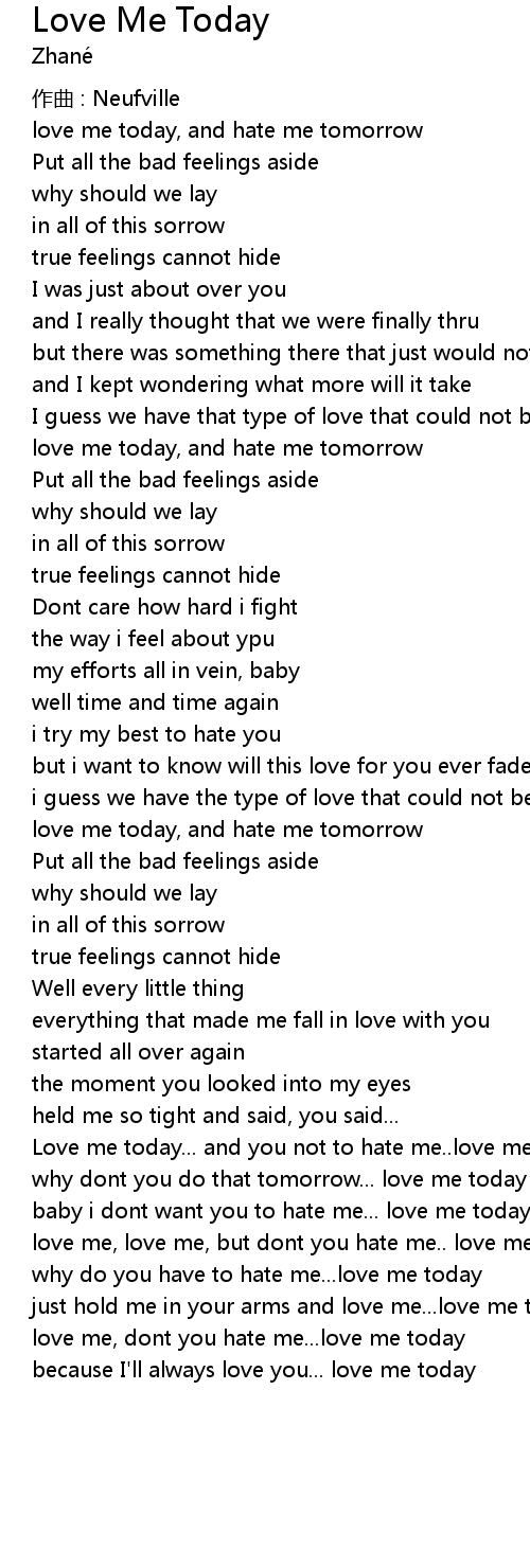 | Love me today... and you not to hate me.. love me today | |