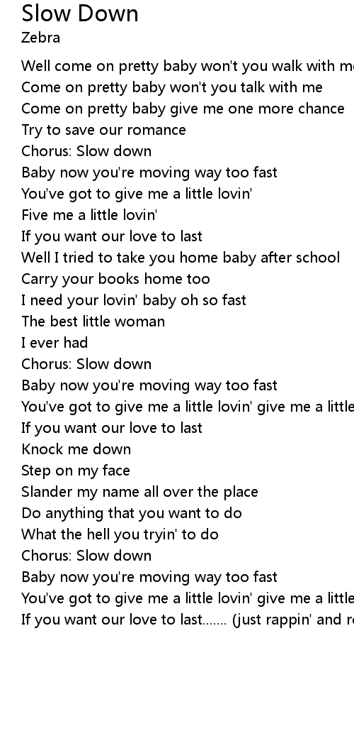 | Chorus: Slow down | |