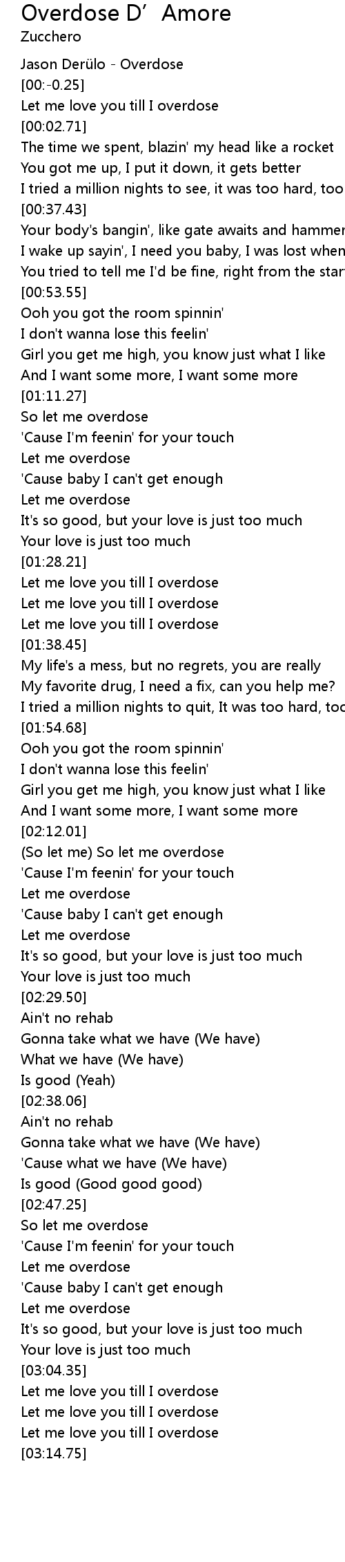 | [03:04.55] | Let me love you till I overdose |