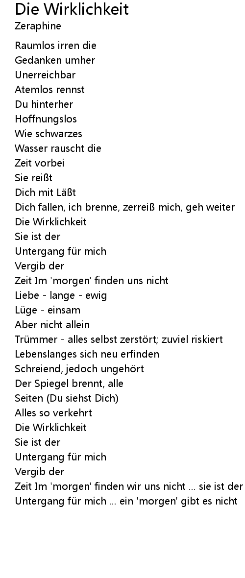 | Dich fallen, ich brenne, zerreiß mich, geh weiter | |