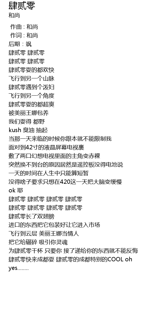 | [01:11.708] | 肆贰零 肆贰零 肆贰零 肆贰零 |