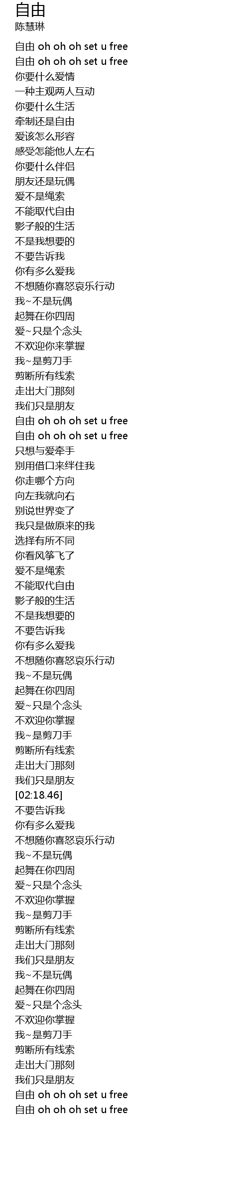 | [03:19.55] | zì yóu oh oh oh set u free |