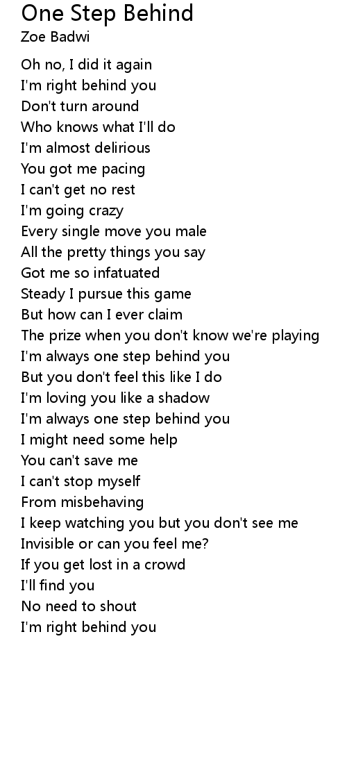 I'm always one step behind you |