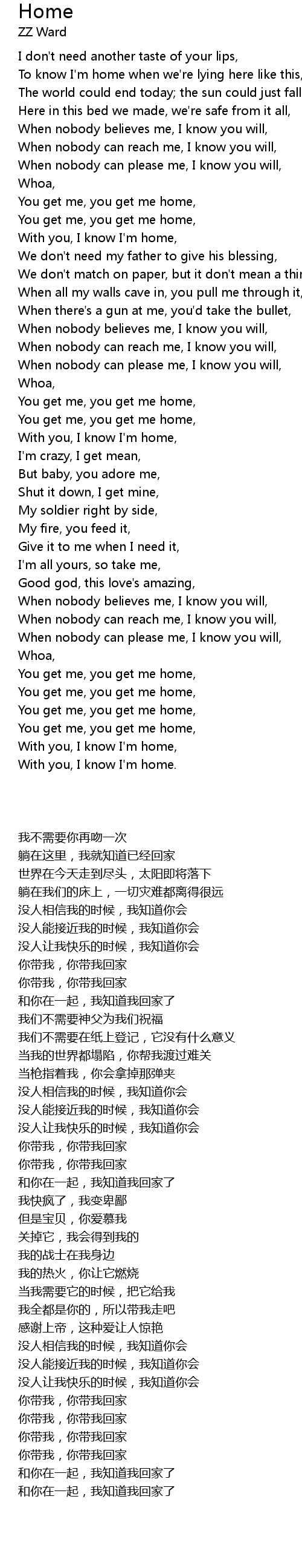 With you, I know I'm home, |