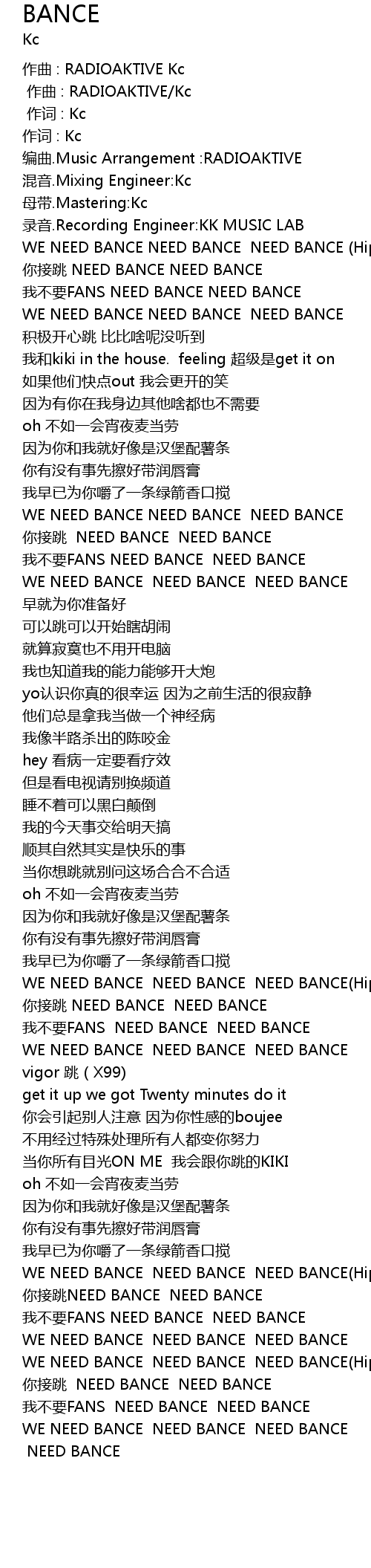| [02:47.89] | WE NEED BANCE NEED BANCE NEED BANCE |