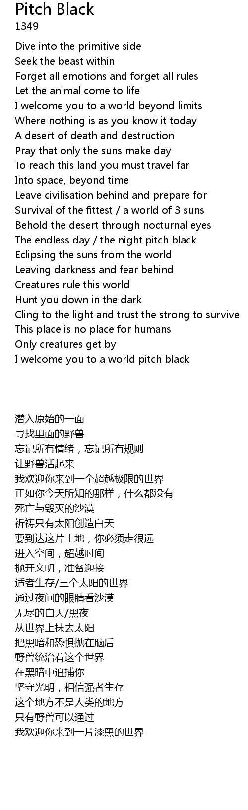 I welcome you to a world pitch black |