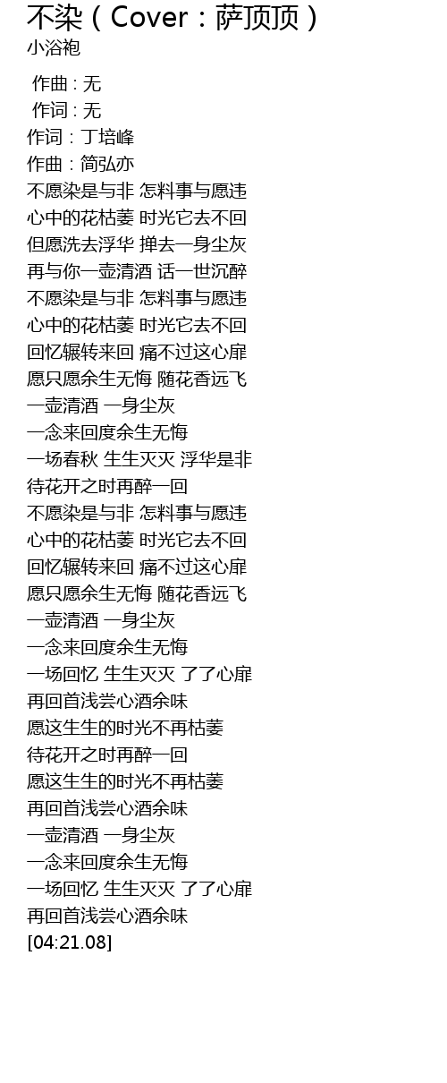 | [00:41.58] | dàn yuàn xǐ qù fú huá dǎn qù yī shēn chén huī |