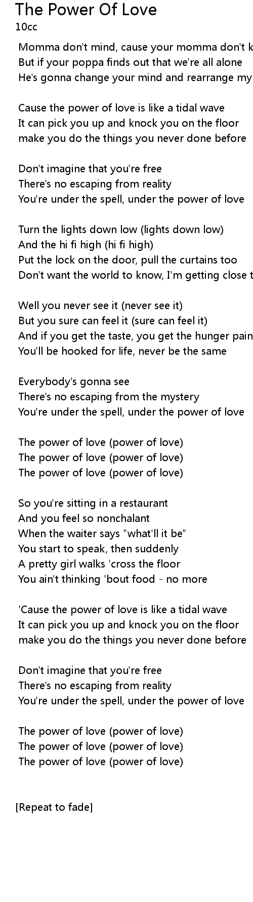 | Cause the power of love is like a tidal wave | |