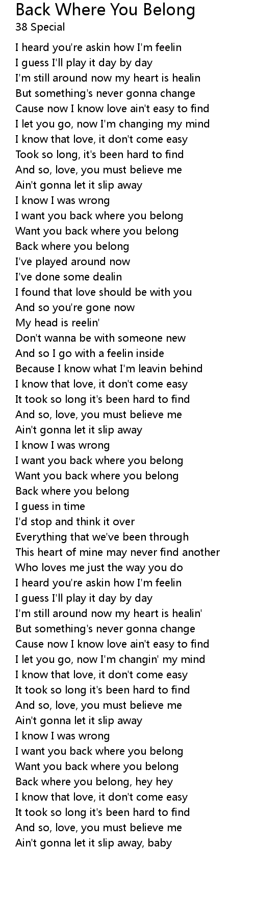 Want you back where you belong |