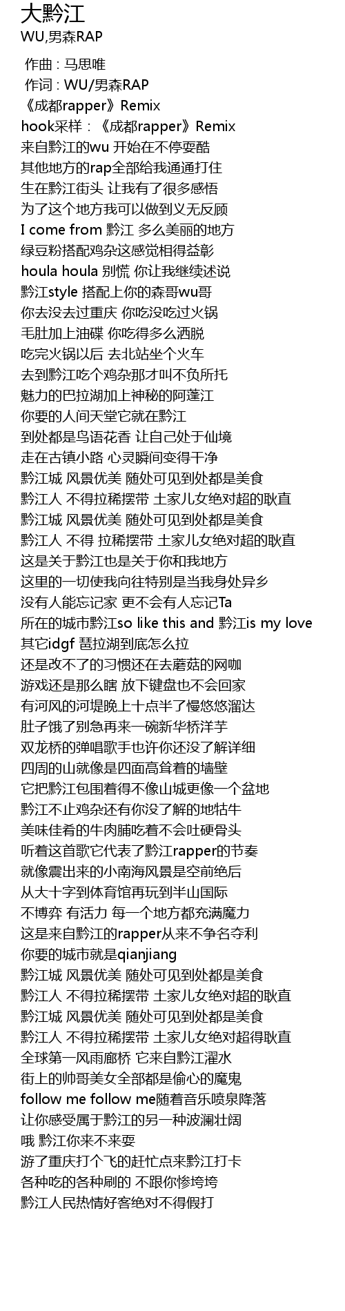 | [01:47.47] | 听着这首歌它代表了黔江rapper的节奏 |