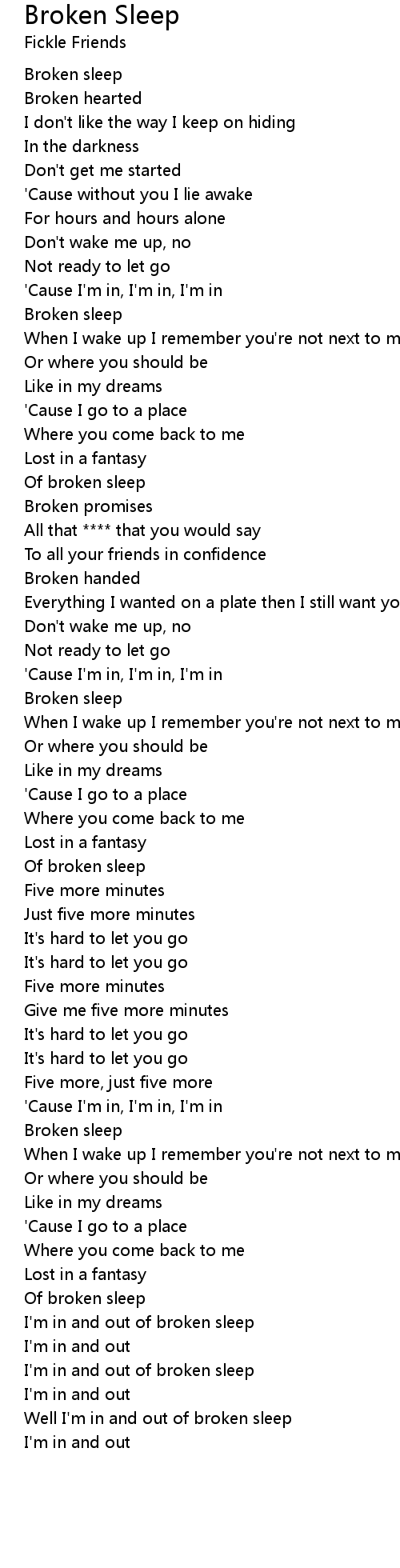 I'm in and out of broken sleep |