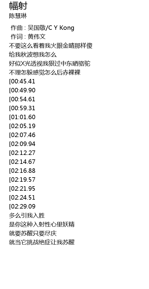 | [03:11.39][02:24.51][01:25.66] | 你具放射性叫我马上现形 |