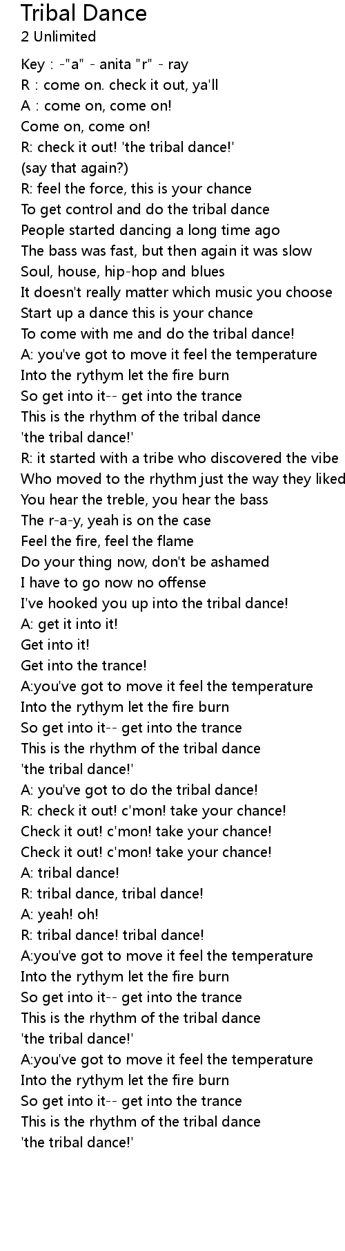 | This is the rhythm of the tribal dance | |