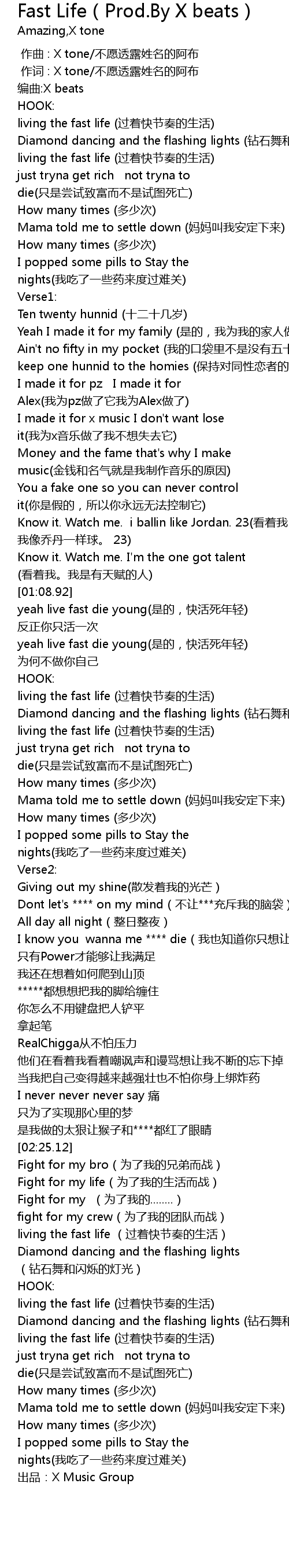 | [02:47.06] | just tryna get rich not tryna to die zhi shi chang shi zhi fu er bu shi shi tu si wang |