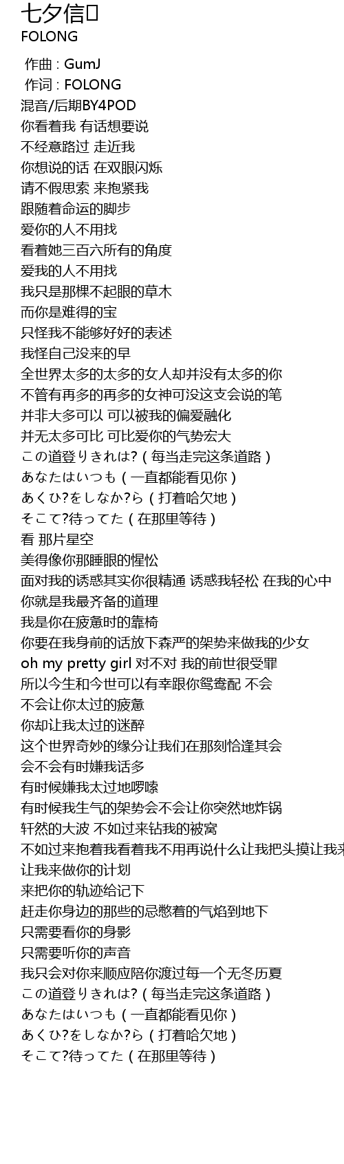 | [00:00.993] | 作词 : FOLONG |