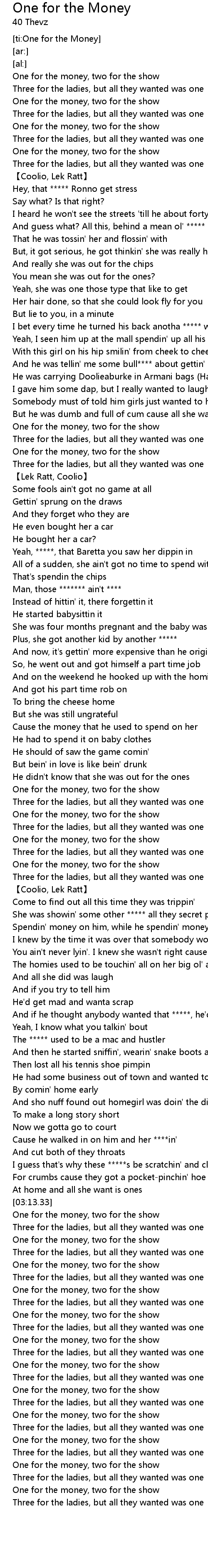 | [03:35.26] | One for the money, two for the show |