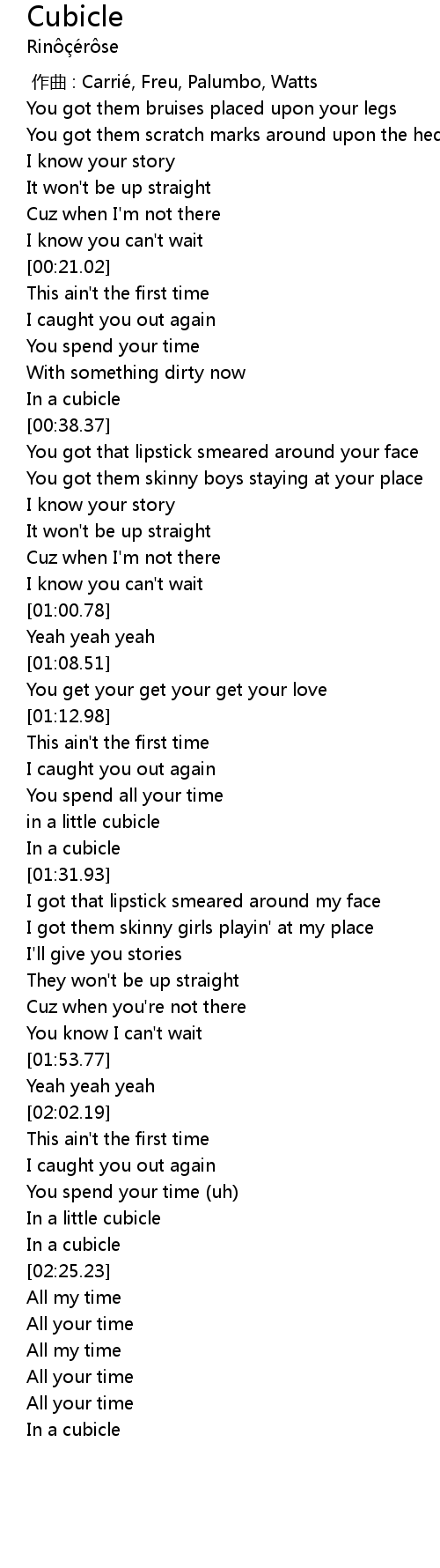 | [01:29.91] | In a cubicle |