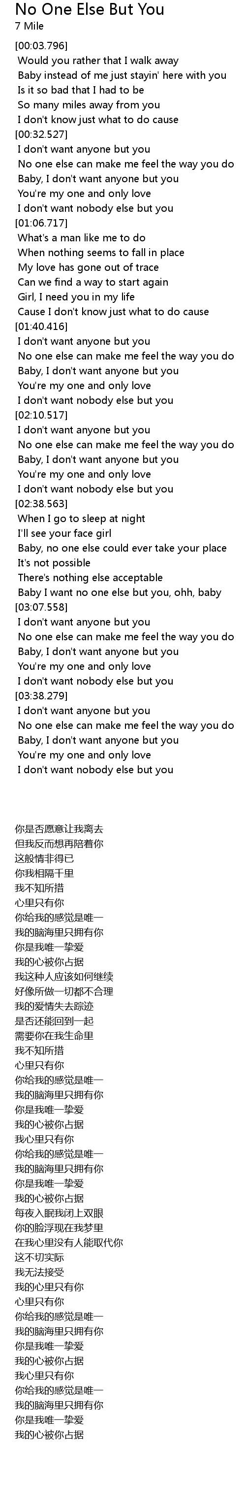 | [03:00.208] | Baby I want no one else but you, ohh, baby |