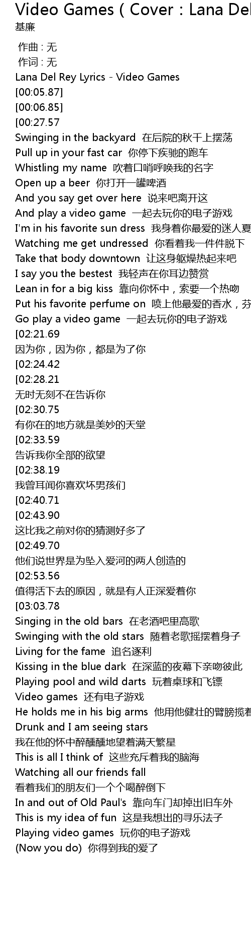 | [00:02.84] | Lana Del Rey Lyrics - Video Games |