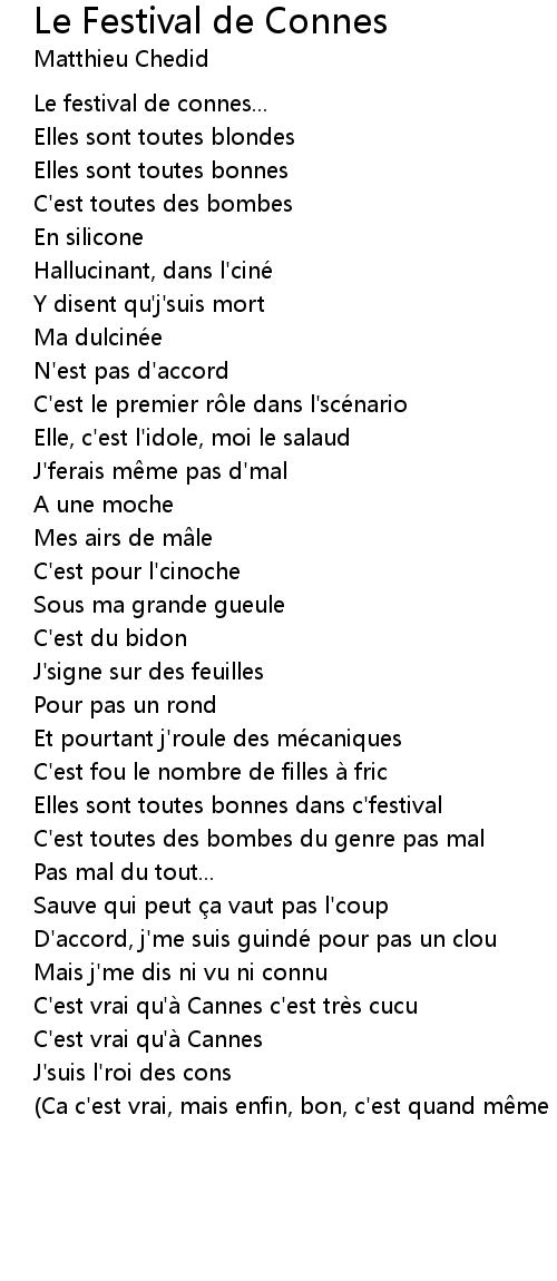 | C' est vrai qu'a Cannes c' est tre s cucu | |