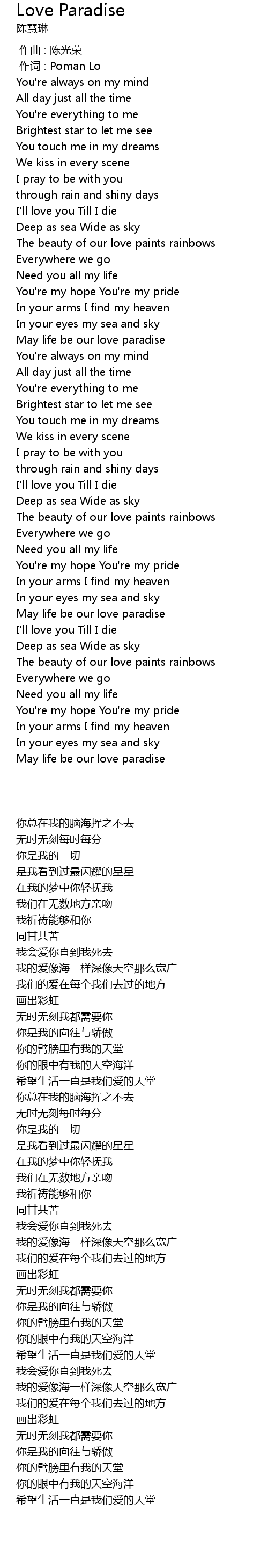 | [00:00.133] | 作词 : Poman Lo |