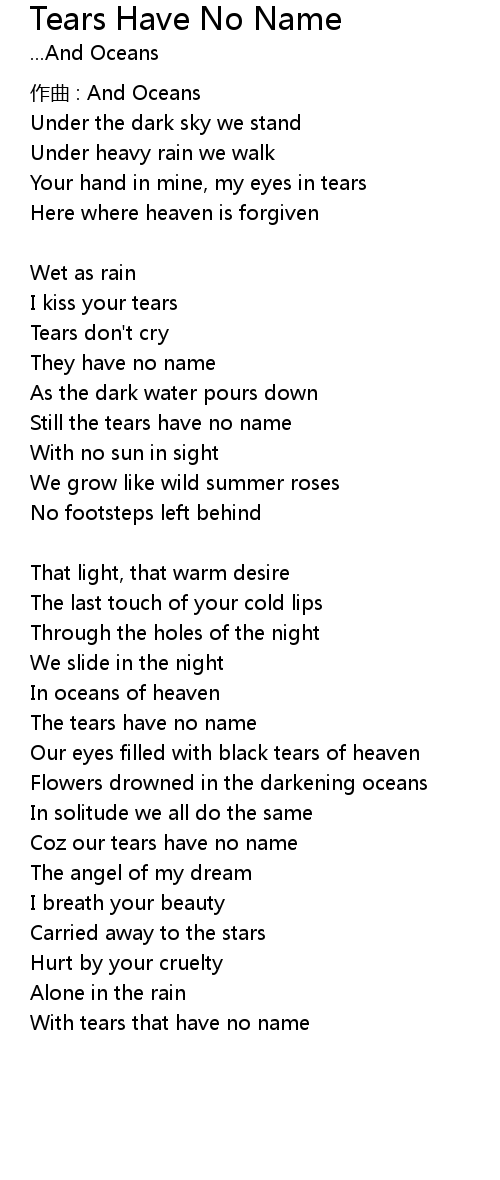 | Here where tears have no name Chorus: | |