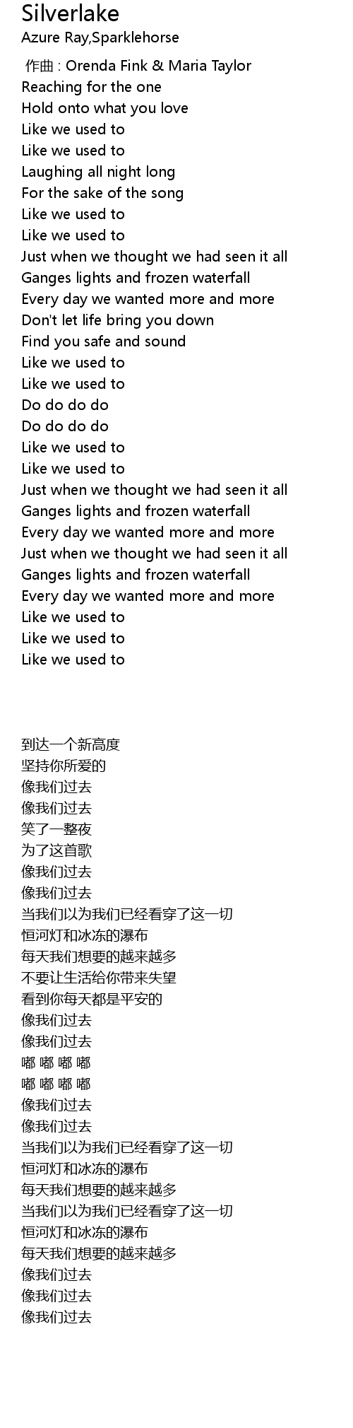 | [00:00.00] | 作曲 : Orenda Fink & Maria Taylor |