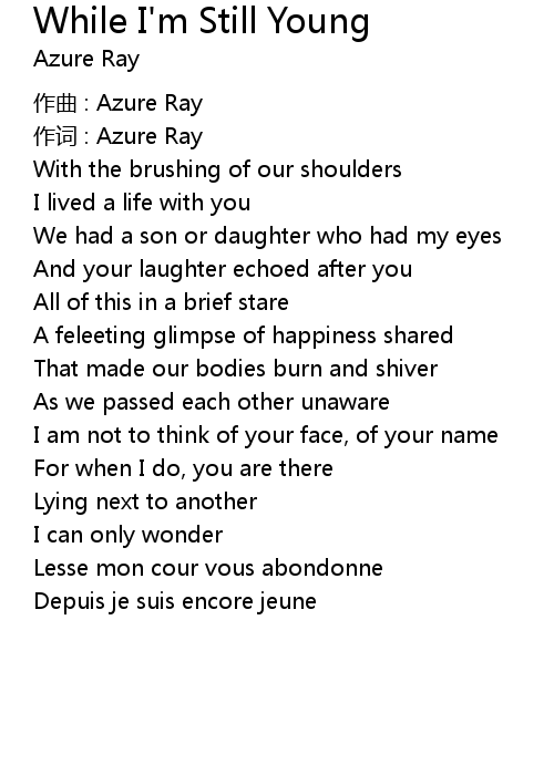 | Song | While I'm Still Young |