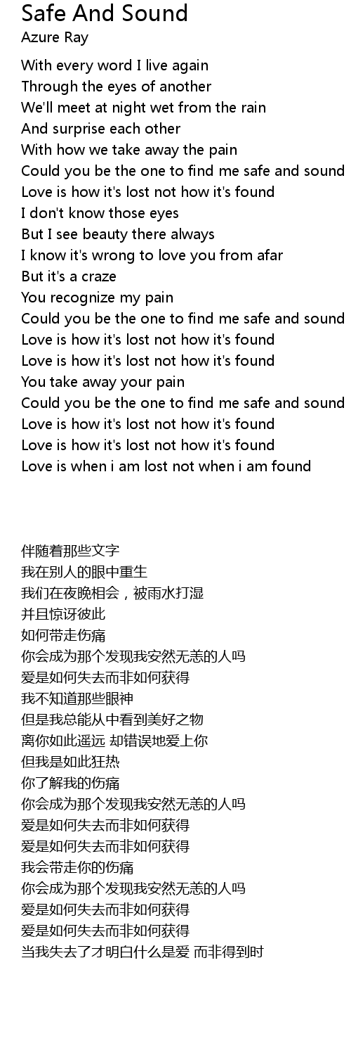 | [02:21.570] | Could you be the one to find me safe and sound |