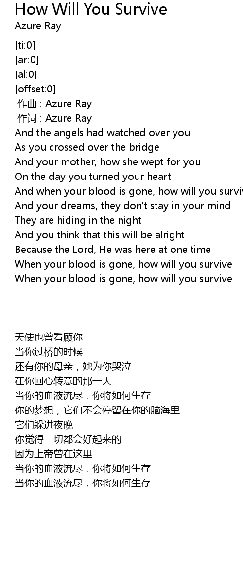 | [01:00.82] | And when your blood is gone, how will you survive |