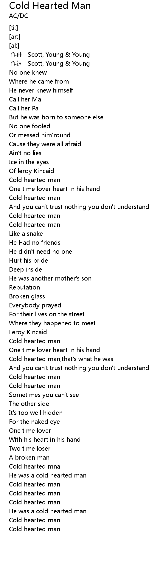 | [00:58.33] | Cold hearted man |