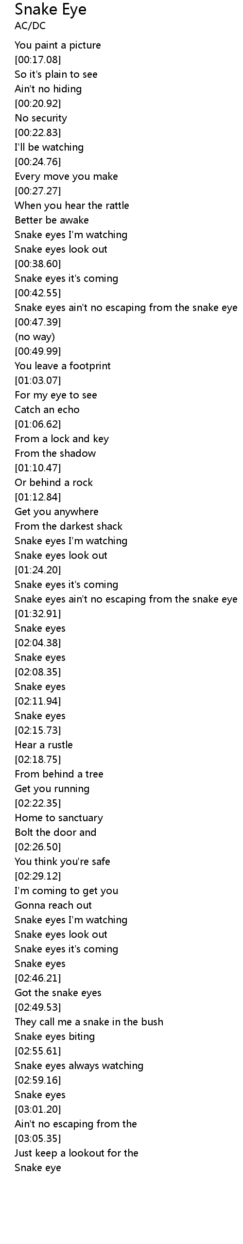 Snake eyes ain't no escaping from the snake eye |