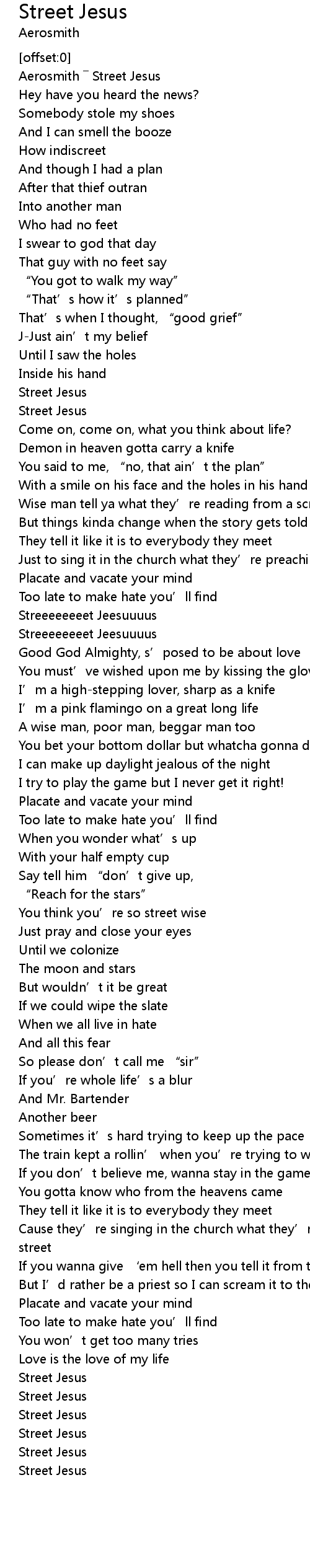 | [00:00.69] | Aerosmith Street Jesus |