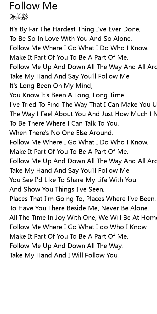 | Follow Me Where I Go What I do Who I Know. | |