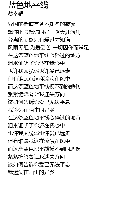 | [00:51.07] | zài zhè tiáo lán sè dì píng xiàn xīn suì guò de dì fāng |