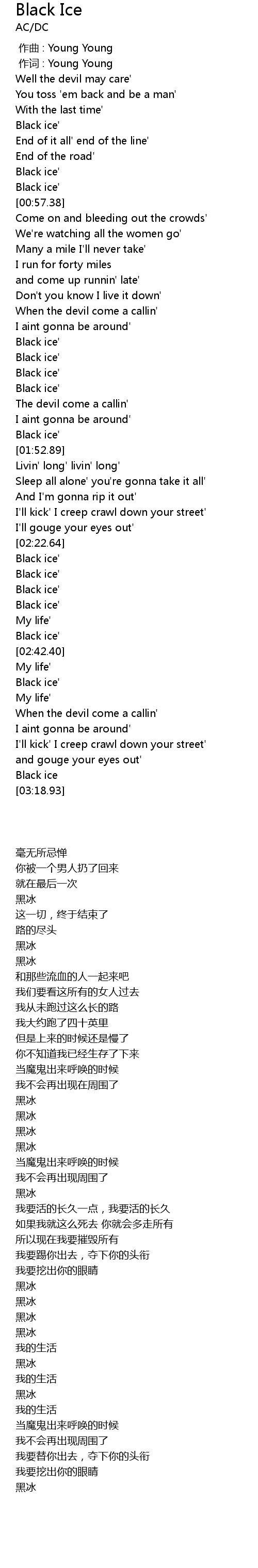 | [02:31.69] | Black ice' |
