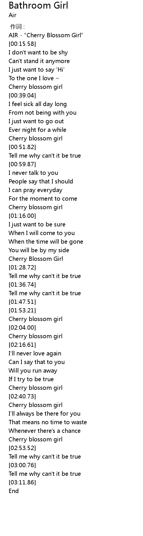 | [00:00.00] | AIR " Cherry Blossom Girl" |