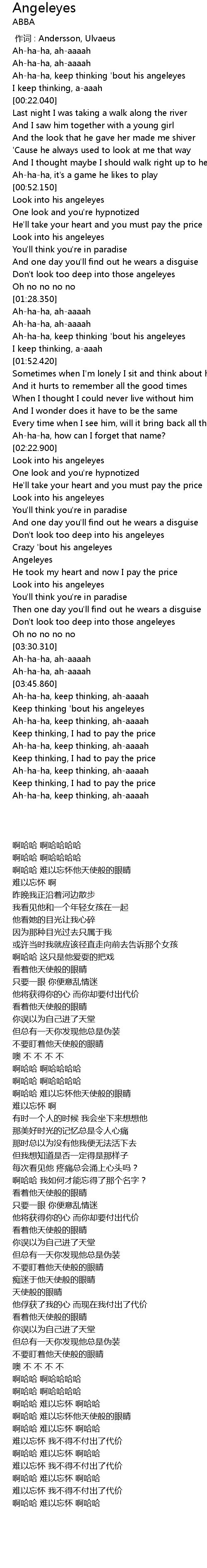 | [01:43.930] | Ah-ha-ha, keep thinking 'bout his angeleyes |