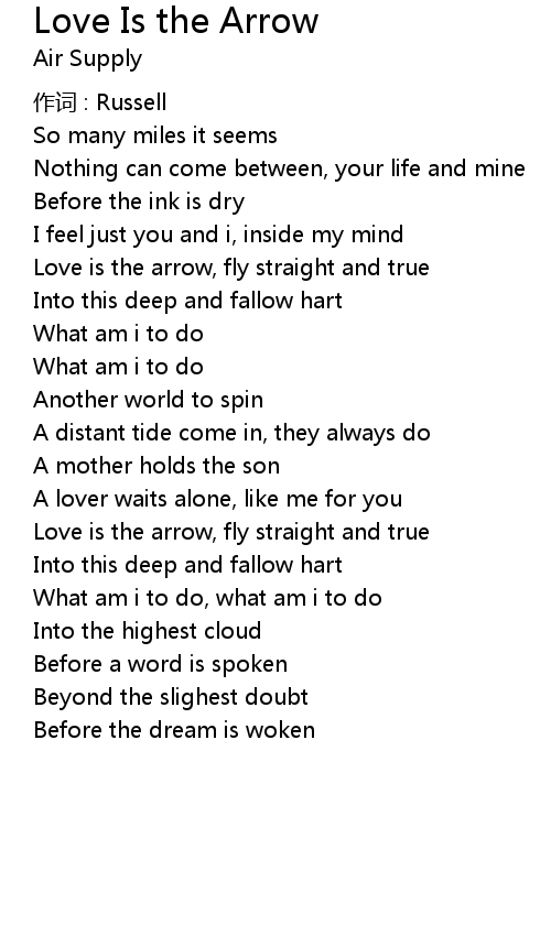 | Love is the arrow, fly straight and true | |