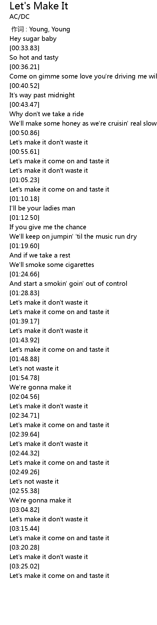 | [02:40.20] | Let' s make it don' t waste it |