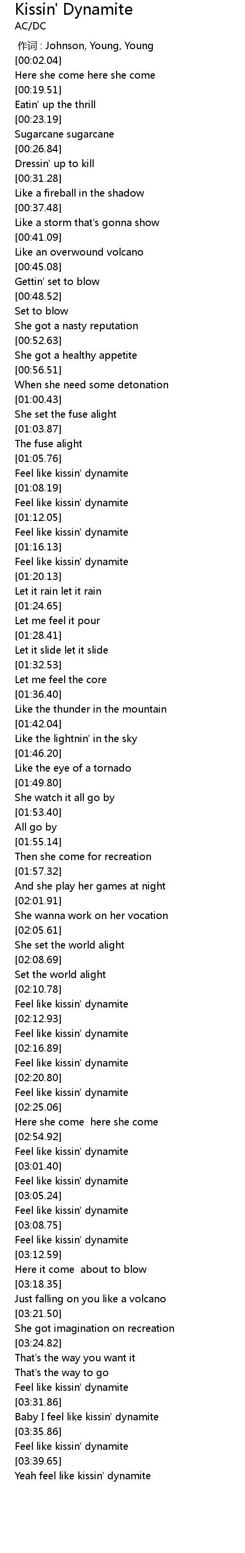 | [03:03.77] | Feel like kissin' dynamite |