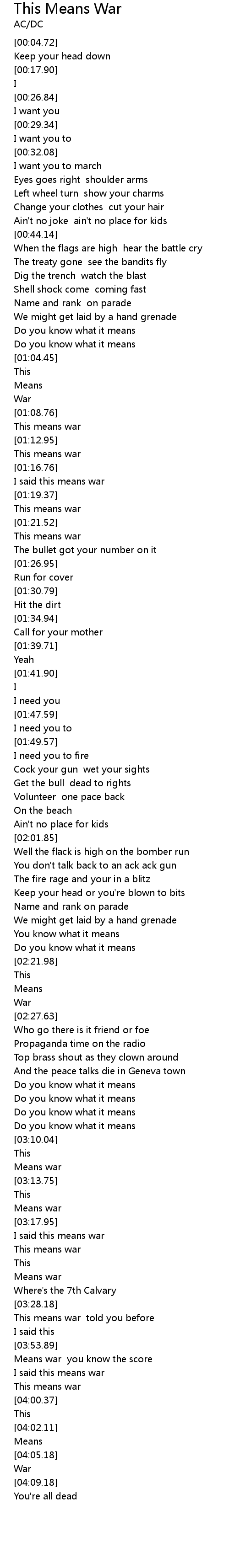 Means war you know the score |