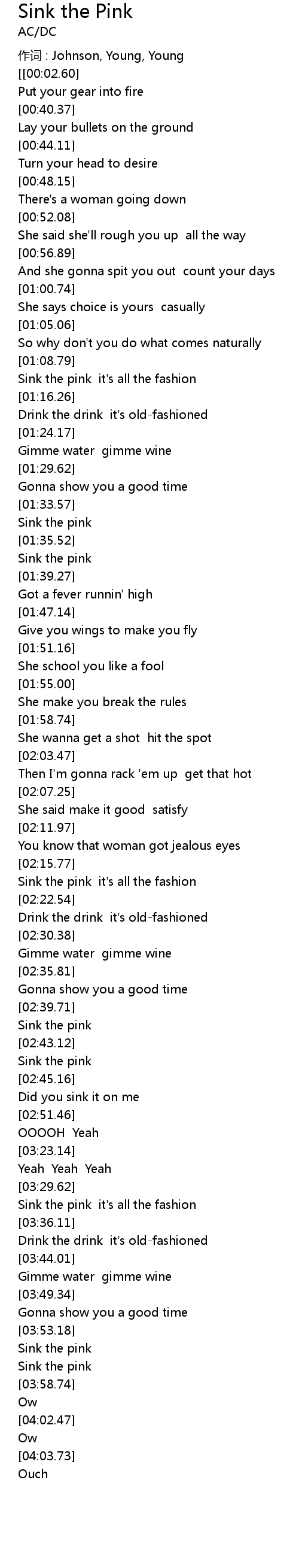 | [02:44.17] | Sink the pink |
