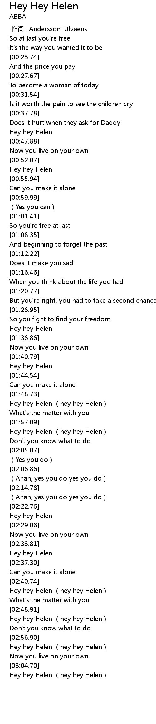 | [02:50.41] | Hey hey Helen (hey hey Helen) |