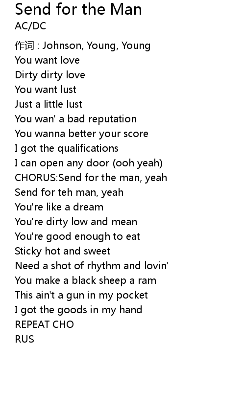 | CHORUS: Send for the man, yeah | |