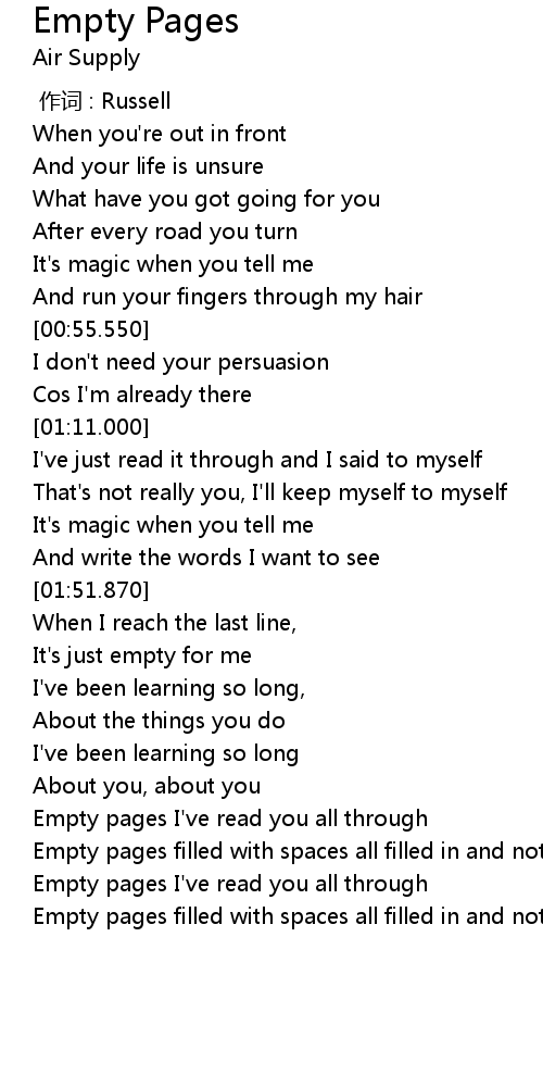 | [03:02.200] | Empty pages I' ve read you all through |