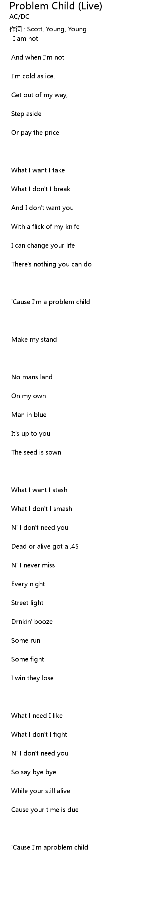 | ' Cause I' m a problem child | |