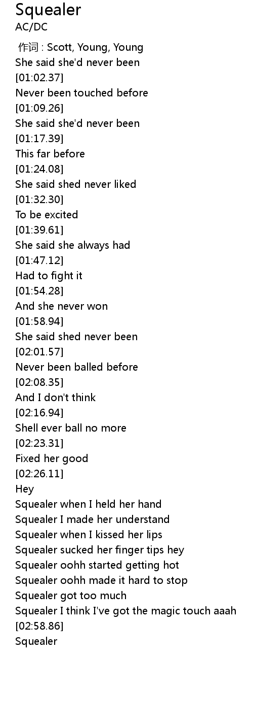 | [02:54.29] | Squealer I think I' ve got the magic touch aaah |