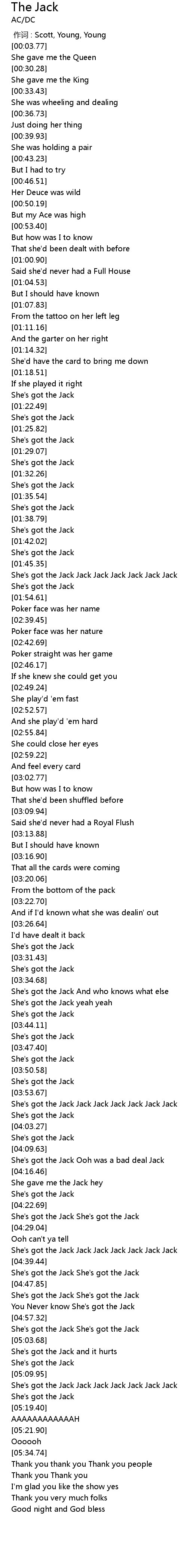 | [05:11.57] | She's got the Jack Jack Jack Jack Jack Jack Jack |