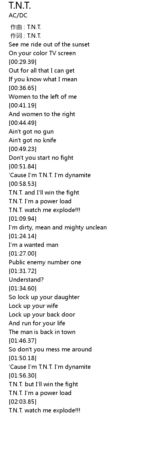 | [02:00.83] | T.N.T. I'm a power load |